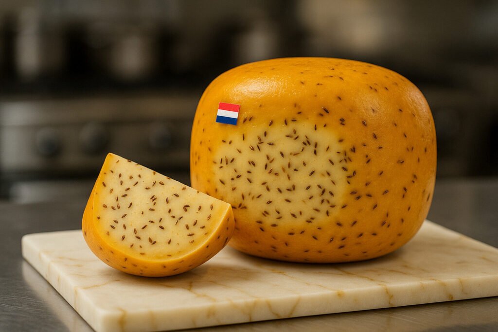 Discover Leyden cheese from the Netherlands, a spiced Gouda with cumin and caraway seeds. Perfect for snacking or sandwiches.